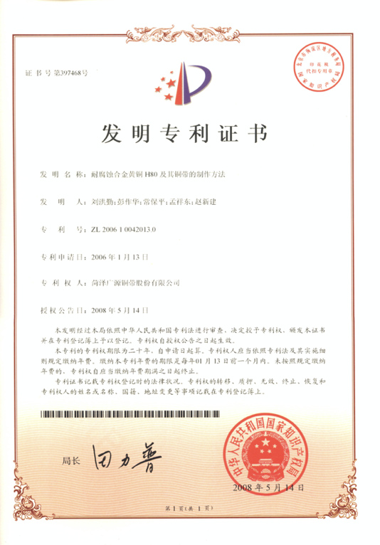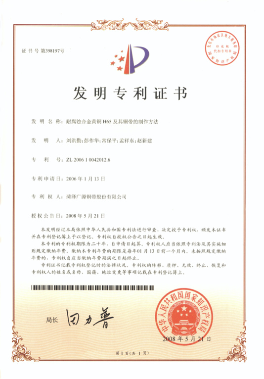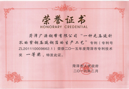 菏澤市專利技術(shù)獎一等獎