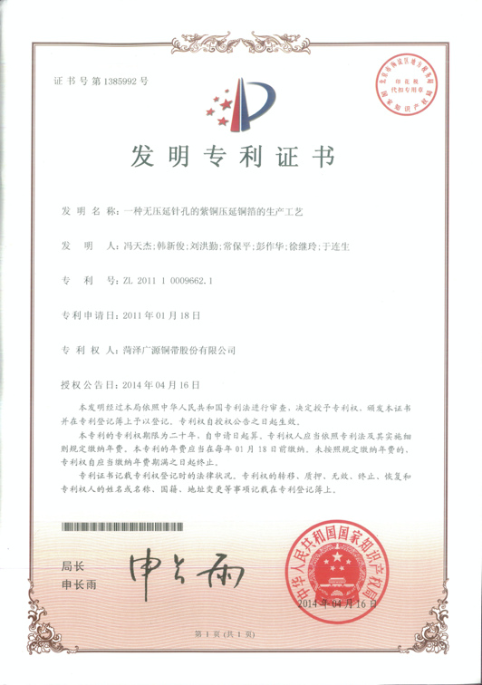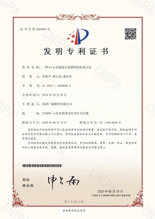 山東省電子壓延銅箔工程實驗室
