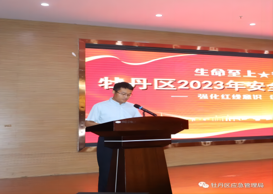 會(huì)議由牡丹區(qū)應(yīng)急管理局黨委書記、局長(zhǎng)王慶國(guó)主持,市應(yīng)急管理局黨委副書記高翔訓(xùn)詞,牡丹區(qū)委常委、副區(qū)長(zhǎng)閻齊明作重要講話。