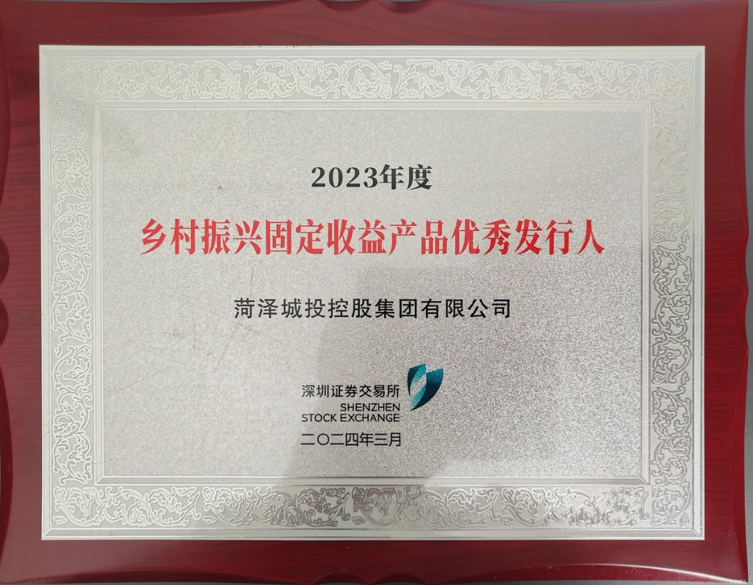 菏澤城投控股集團獲評深交所“2023年度鄉(xiāng)村振興固定收益產(chǎn)品優(yōu)秀發(fā)行人”榮譽稱號