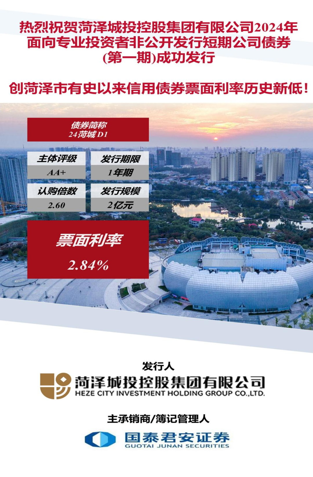 菏澤城投控股集團(tuán)成功發(fā)行2024年第一期公司債券