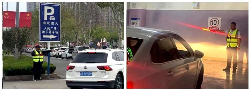 “提供舒適便利的停車(chē)服務(wù)”。人民廣場(chǎng)項(xiàng)目專(zhuān)門(mén)增設(shè)大量道路及停車(chē)場(chǎng)指示標(biāo)識(shí),每日30余名引導(dǎo)服務(wù)人員不間斷維持交通秩序,從人民路開(kāi)始,分南北方向,對(duì)過(guò)往車(chē)輛進(jìn)行指揮分流,對(duì)游客車(chē)輛進(jìn)行全程引導(dǎo),確保游客停車(chē)方便,出行順利。