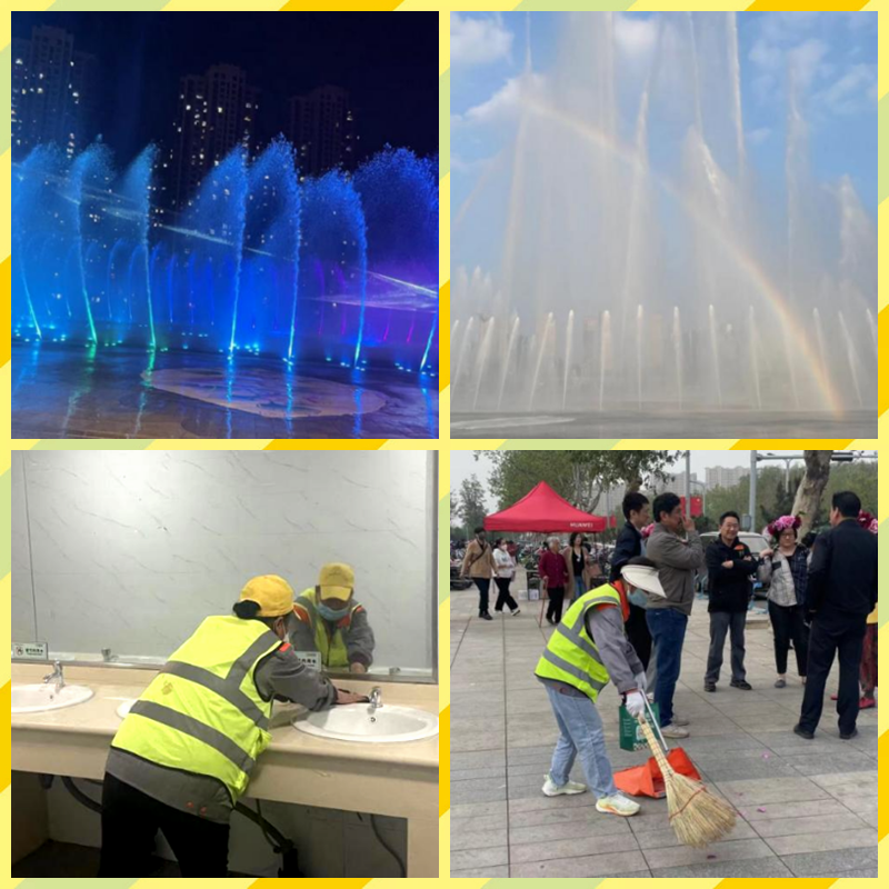 “營(yíng)造優(yōu)美的人文環(huán)境”。人民廣場(chǎng)項(xiàng)目研究制定標(biāo)準(zhǔn)化、精細(xì)化工作流程,對(duì)廣場(chǎng)音樂(lè)噴泉進(jìn)行多次調(diào)試養(yǎng)護(hù),新增30余首喜慶音樂(lè),每日早、中、晚六個(gè)時(shí)段開(kāi)放,每一場(chǎng)都是震撼的視聽(tīng)盛宴,吸引了眾多來(lái)菏游客和本地市民紛紛專(zhuān)程前來(lái)觀看、打卡、拍照,為美麗菏澤城新增了一道靚麗風(fēng)景線。同時(shí),增派40 余名保潔人員,分早中晚班,高頻次、無(wú)死角巡回保潔,衛(wèi)生間設(shè)專(zhuān)人定點(diǎn)保潔,提供了一個(gè)衛(wèi)生整潔的旅游環(huán)境,彰顯菏澤美好城市形象。